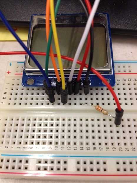 También he añadido una resistencia de 330 Ohm entre el BL y el pin 9. Esto añade una pequeña protección para la pantalla ya que no se supone para funcionar a 5V.