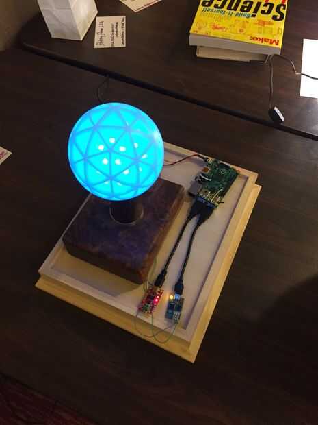 El área hueco dentro de la base contiene la electrónica de control: una frambuesa Pi incorporado computadoras, un tablero de Fadecandy para conducir los LEDs y una interfaz RS-485 para leer los datos del sensor IR.