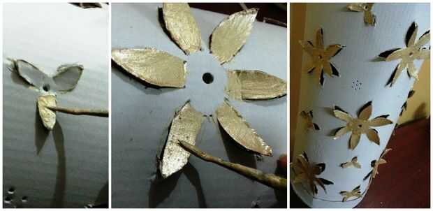 También pinté las flores con pintura glitter Oro.