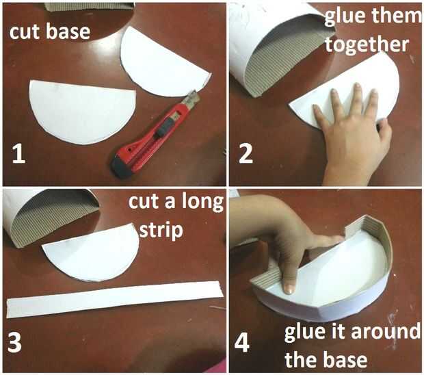 Ahora, corte una tira larga de cartulina y pegamento alrededor de la base (ver foto).