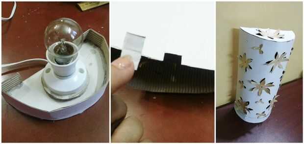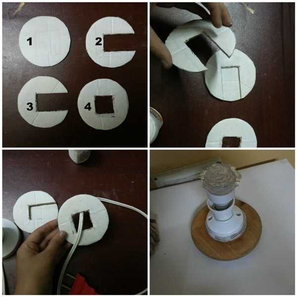 Cortar 4 trozos iguales de cartón y cortamos como se muestra en la imagen, yo también he contados les. Ahora, coloque 1 en la parte inferior y pegar 2 y 3 arriba de él. Ahora tome el cable (junto con el enchufe) a 4 y péguelo en 3. Usted tiene el luz listo.