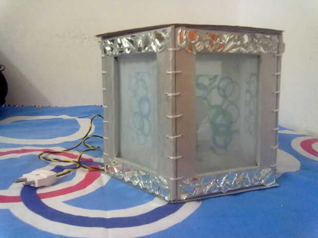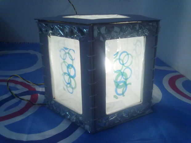 todo lo que necesitas es un paño absorbente, cartón, roto espejos, hoja cellophine, papelería básica y aproximadamente un tiempo de días. Y su pantalla hecha a mano está listo para regalo. (La decoración puede variar) Cellophine añade una dimensión interesante a la lámpara :)