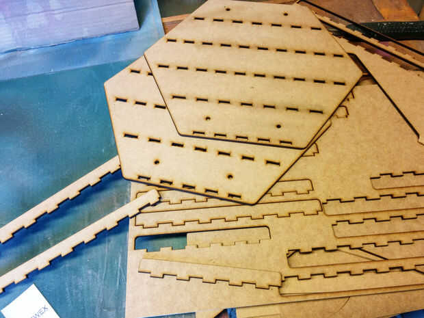 Las tablas fueron cortadas usando un cortador láser, he añadido algunos pegamento de madera cuando la estantería.