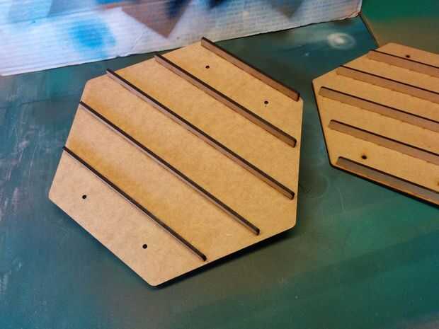 Pero saqué los orificios cuadrados en 3, 9mm mientras que el MDF es 4mm de ancho para un ajuste muy apretado. (ya que el láser de corte material)
