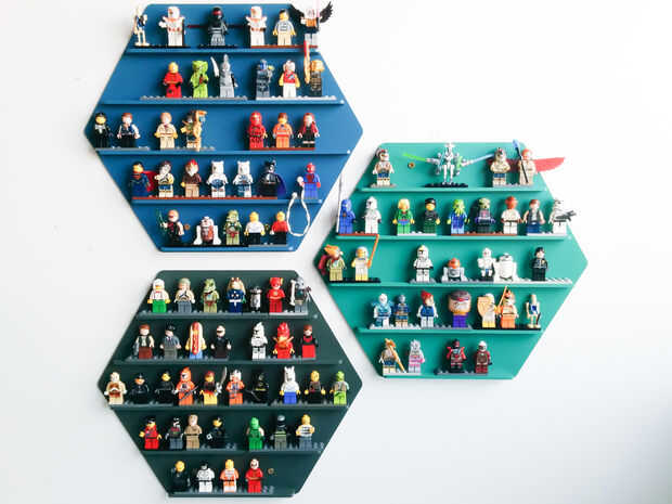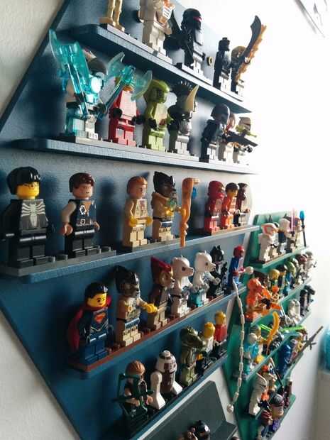 Hasta ahora sólo he puesto las figuras en 2 * x placas o diferentes tamaños. Son estables sólo allí de pie, pero una muy fácil de derribar cuando los niños moverlos hacia arriba y hacia abajo. Por lo que probablemente voy a algunos largo 2 * x placas en oscuro gris y pegarlos (no las figuras) para los estantes.