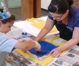 Adultos y niños les encantará esta actividad práctica que proporciona la oportunidad de llenar una pantalla con la pintura y revelan un diseño en un bolso de mano. Los niños pueden participar usando el pincel de espuma para pintar sobre el lienzo.