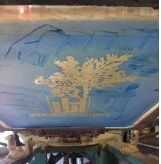Extender una generosa línea de tela de impresión de tinta de la pantalla en la parte superior de la pantalla de la plantilla.