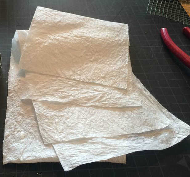 Corte el papel de arroz o la tela un poco más que la altura y la anchura de la malla del paisaje. Ponga a un lado.