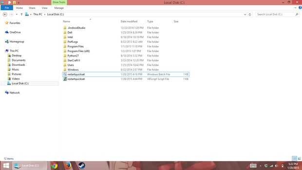 Luego poner restartquickset.bat y restartquickset.vbs en "C:\" [abrir explorer, -> Pc este -> LocalDisk (C:\)]. Pediré permiso mover archivos allí, éxito sí.