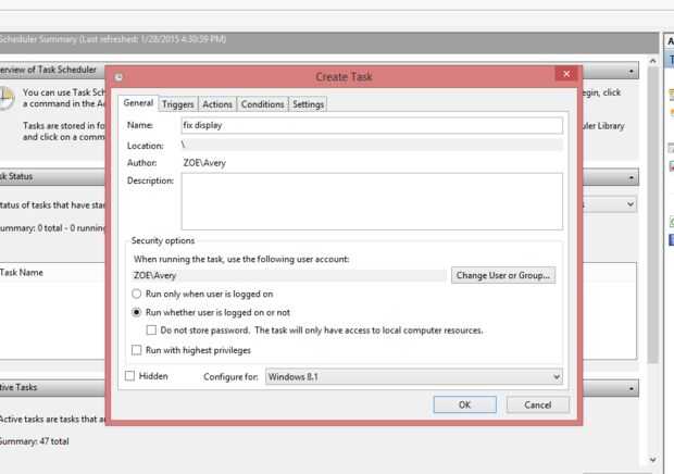Abra el programador de tareas (llamadas de windows 8 "programar las tareas" en el menú Inicio), hit crear tarea y seleccionar las opciones como en las fotos. Golpe OK, escriba la contraseña si se le pide, y listo!