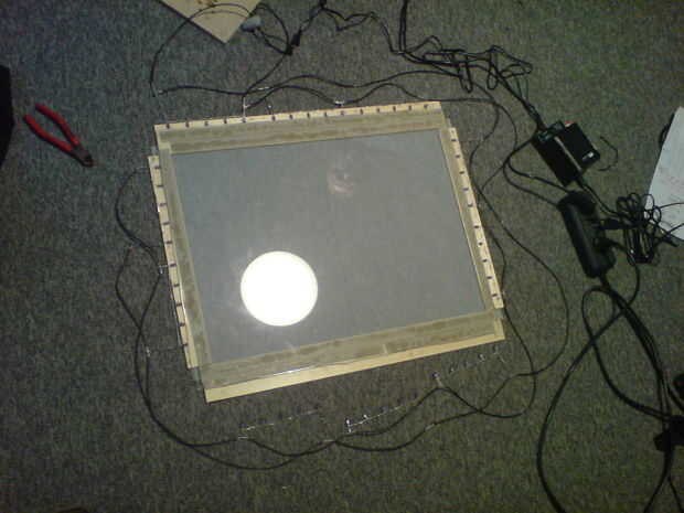 siguiente capa de madera, conectar el led y el vidrio acrílico
