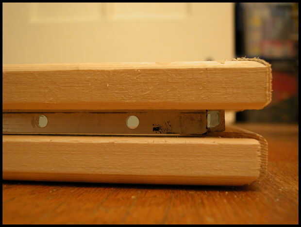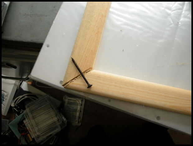 El componente principal que se construirá es la propia pantalla. Se trata de una pieza de acrílico, con un bastidor que sostiene el difusor y leds IR en posición. He optado por una construcción de estilo sandwich de canal 1x2s y aluminio. Mi acrílico fue 30x36x0.25 pulgadas así que hice dos cuadros para emparejar, cortar los bordes y montaje con tornillos y adhesivo de construcción. El diseño del emparedado es simple y deja mucho espacio para el cableado de los leds.