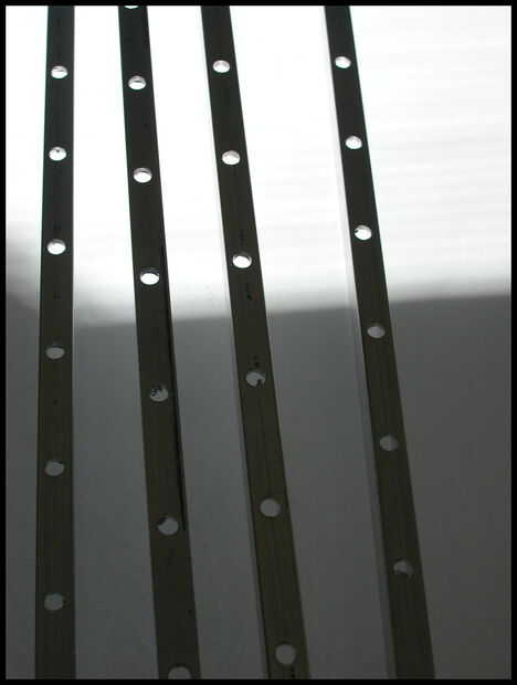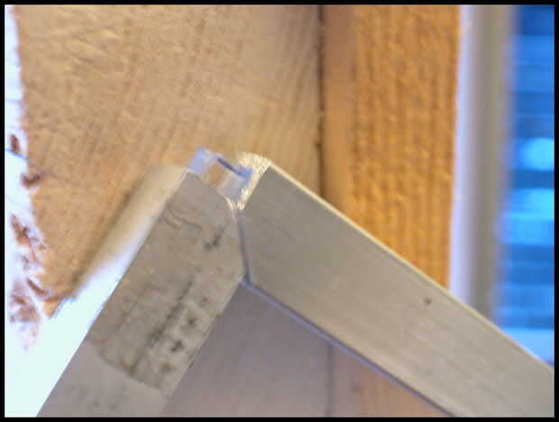 Los LED están montados en aluminio c-canal, presiona en los orificios. El canal sirve para sostener los leds en el lugar, así como proporcionar un deflector para dirigir la luz en el borde del acrílico. Bloques del espaciador adicional de acrílico mantienen el panel de desplazamiento alrededor y empujando los leds fuera de sus agujeros.
