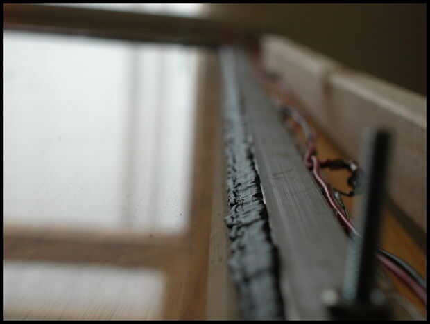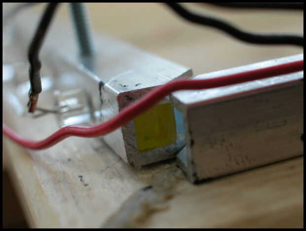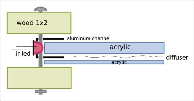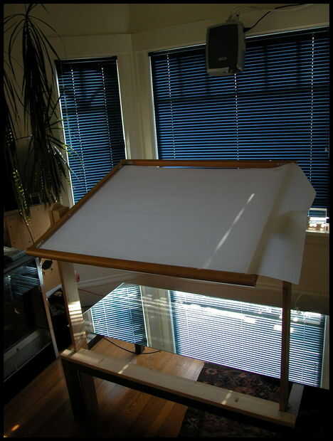 En orden para el proyector Mostrar en la superficie es necesario introducir también un difusor (no mostrado aquí). Una hoja de papel delgada redacción se incluyó en el sándwich apoyado por una segunda capa fina de plexiglás.