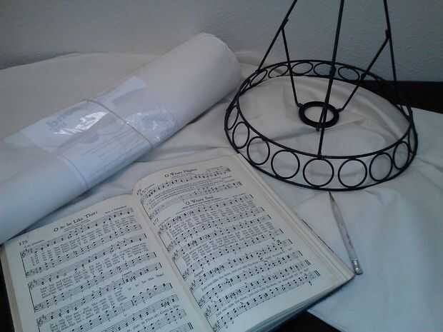 Se necesita un marco de pantalla de alambre, fusibles, correas, muselina, máquina de coser, hilo, tijeras, música de la hoja y una plancha.