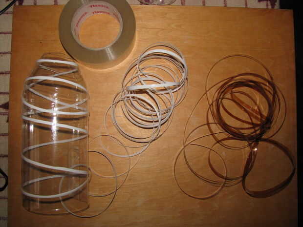 , Palo (punta) adhesiva (muchos colores) alrededor de la parte media de la botella transparente de 2l.