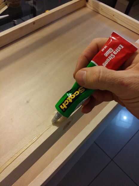 Tomar un claro y fuerte adhesivo y pegar la tapa a cada lado de la precaución