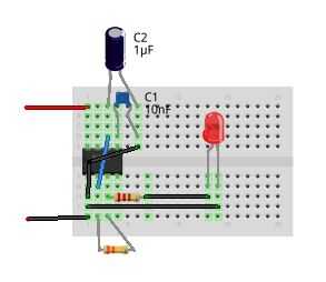 Figura #2 muestra un circuito de un LED parpadeante. Cambie el valor de C2 y R1 para ajustar la velocidad.