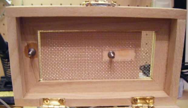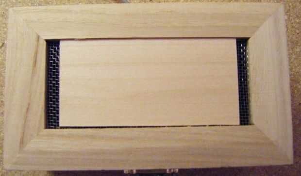 2. Pegue la cabeza de un tornillo en la parte posterior de la corredera de madera. Asegúrese de que alinee con la ranura en el forro interior de malla de la tapa.