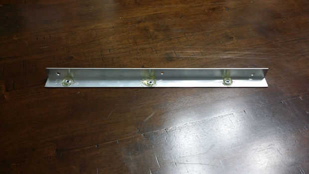 Utilice un ángulo de aluminio de 3/4" y para que quepa en la parte superior de la estructura de madera. El ángulo del marco de la abrazadera y taladrar tres agujeros de la parte superior a través de la madera y el aluminio. Usando pegamento caliente os adjunto 3 tuercas sobre los orificios que permitirán tornillos para montar el marco del panel al ángulo, sin embargo puede comprar un ángulo más grueso y pasarlo o usar jb weld para un montaje más seguro. Perfore tres agujeros en la otra pata del ángulo, donde el perno acodado pasará por montar el ángulo a la pared.