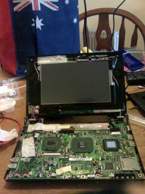 ahora era feliz progresando fondo este hack, y la i a la pantalla. y de repente me lo pegó... tenía ninguna manera de montar la pantalla. así como cualquier auto respeto hombre australiano, usé cinta :)