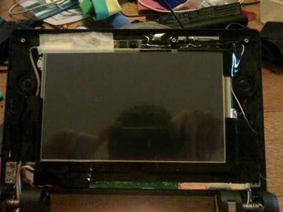 en el bisel de la pantalla (la parte con las rejillas del altavoz que va alrededor de la pantalla.) hay 4 o 5 pestañas que están diseñadas para, haga clic en la pantalla LCD pero como hemos montado otra lámina de vidrio sobre la pantalla lcd, presione hasta que quede apagado. o no se cierra.