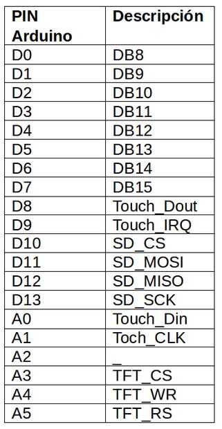 Paso 3: Mapa de pinos de la pantalla táctil ITDB02 2.8'' Shield Arduino