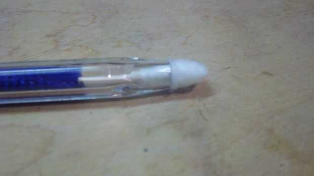 Cut off al final de un q-Tip a unos 2cm y que ponga en la punta de la pluma.