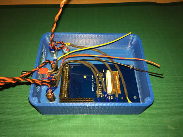 Como el espacio dentro del recinto es limitada el circuito se ha dividido en tres piezas de placa perforada, cada corte al tamaño exacto requerido. Esto permite una colocación más flexible dentro de la caja, asegurando que todo se ajuste. Si está ensamblando su pantalla sin botones opcionales debe tener mucho más espacio para conseguir todo lo cómodamente. Trate de mantener los cables que enlazan a las diferentes tablas tan cortas como sea posible, un par de pulgadas debería ser suficiente.