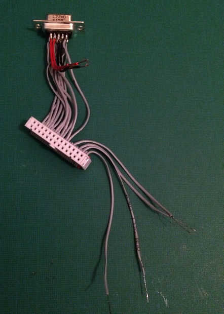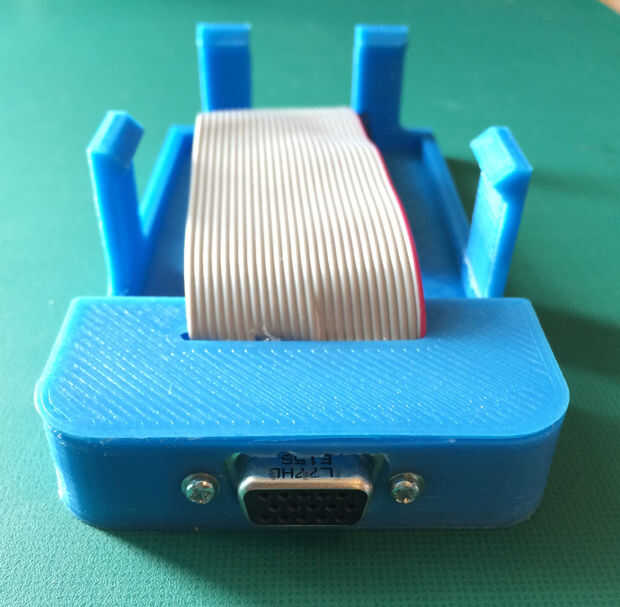 Usted se rompe hacia fuera dos cables de cinta planos cabecera en conectores HD-15, uno para el lado de la pantalla/PiTFT, el otro para el lado de RaspberryPi/PiKon, la UDV y el PiKon luego se unen mediante un cable de HD15.