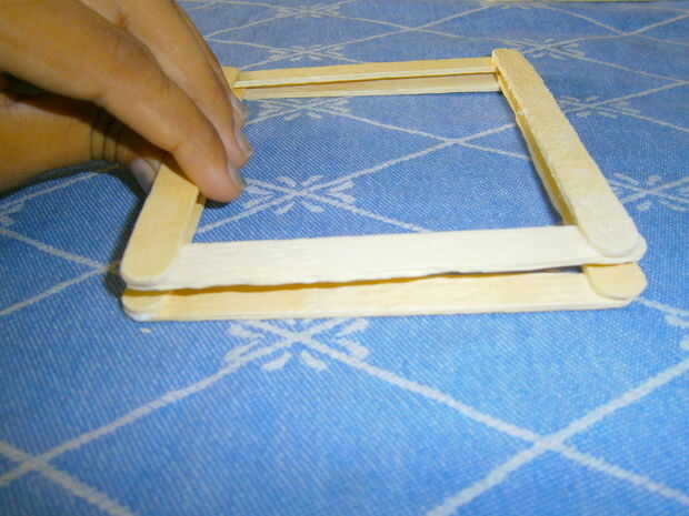Tomar 2 cuadrados y pegarlos uno sobre el otro. Esto formará la base de la lámpara.
