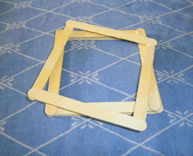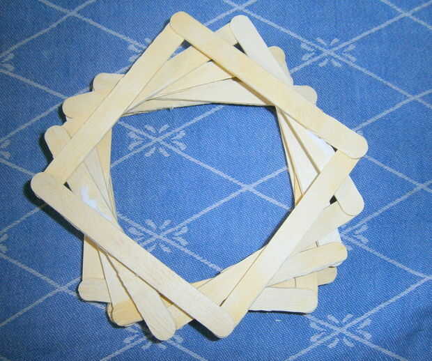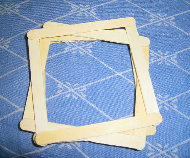 Con los otros cuadrados forman la espiral. Coloque la primera plaza con respecto a la base en un pequeño ángulo como se muestra en la figura. Pegar.