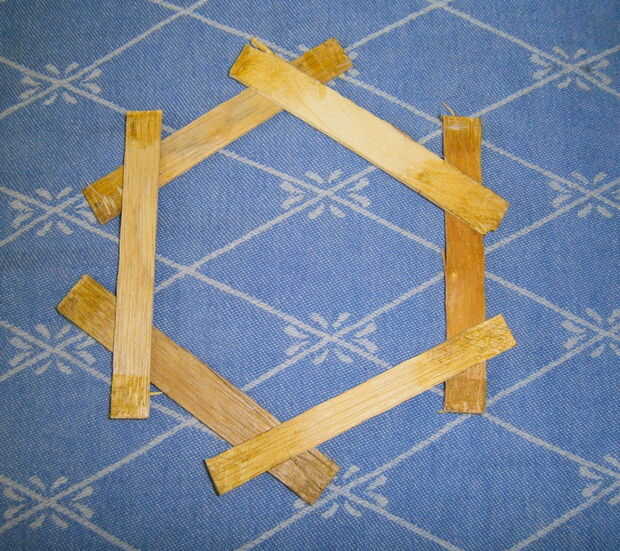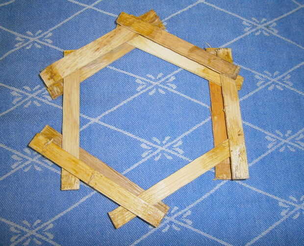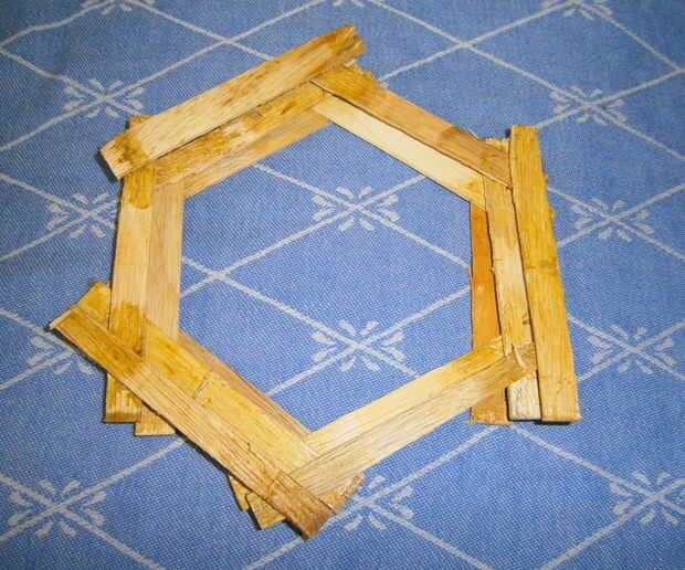 Para ello, empezar por colocar los palitos a la hexagonal de la forma. Les pegan.