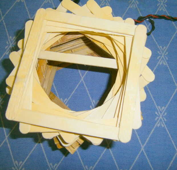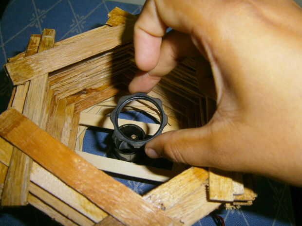 Pegue dos palito que sostenga el sostenedor de la lámpara en su lugar en la parte inferior.