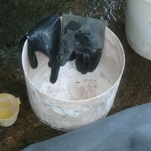 Como el cemento, cuando se almacena en baldes plásticos con tapa, boquilla seca va a durar mucho tiempo en almacenamiento. Lechada con arena o "pega" como lo llaman aquí, se utiliza para el encolado de baldosas. No se comprime, por lo tanto es menos propenso a agrietarse que es cemento. Mezclar con agua para una consistencia de crema espesa para el cepillado.