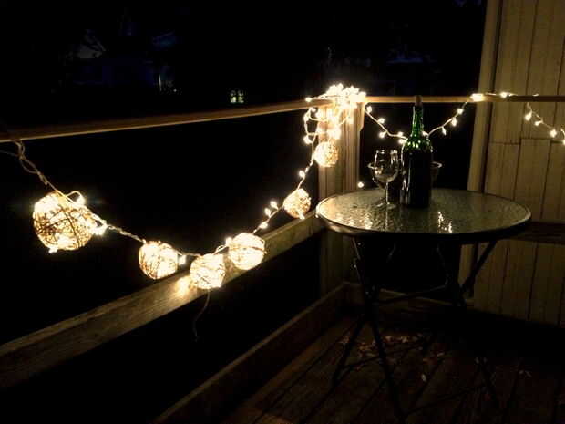 Encuentran las lagunas más grandes de la guita y cosas varias bombillas en cada lámpara. Continúe este proceso, encadenar las cortinas de la lámpara a lo largo de las luces.