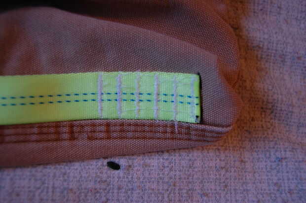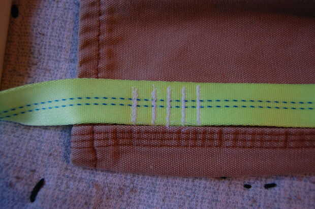 Cosí la cinta cruzada la anchura de cinco a seis veces. También he dejado espacio suficiente así que si quería crear una manera de sellar la bolsa tengo espacio suficiente.