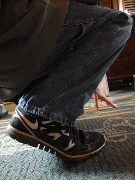 odio tirar los pantalones viejos, así que un día estaba pensando qué hacer con un par que sólo había conseguido pequeños.Lo que se necesita:Par de pantalones de mezclillaCerca de 2 a 3 pies de cintaCerca de 8 pulgadas 1/2 pulgadas PVCPeso (más que na
