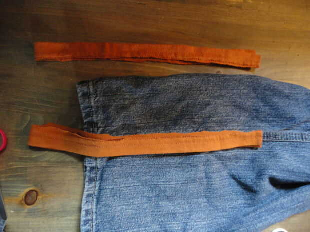 Para el método más simple que usando una tira de 3 a 4 centímetros de tela, cosida en el interior de la pierna del pantalón. Debe tener cuidado al coser la parte más superior de la tira firmemente a la altura de aproximadamente 1/3 hasta la pierna si llevas botas, si no que tienes que meter los pantalones en las botas que parece tontas.