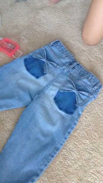 insumos necesarios: tijeras, lápiz, pantalones vaqueros de la tienda de segunda mano, paja, blanqueador, bedazzler, lavadora, espárragos, hierro-en remiendo y hierro.1) marcan los jeans a la longitud que desee cortar.2) cortar los jeans en donde se l