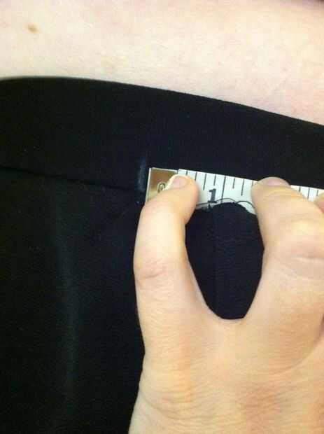 ** Nota: normalmente tienes que tener tu pantalón al revés para marcarlos así que no habrá ninguna posibilidad se verá las marcas de medición cuando se acaban los pantalones.