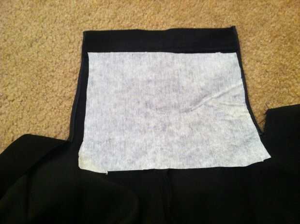 2. Si usted accidentalmente fusible su interfaz a la parte delantera de los pantalones en vez de dentro, no todo está perdido! Antes de coser la pieza de tela sobre la entretela, doblar los bordes superior e inferior y coser a lo largo de ellas para crear un borde acabado. Colocar esta pieza sobre la entretela en la parte delantera de los pantalones, coser abajo y seguir adelante! Puede utilizar a la tela que los pantalones o tienen una contrastadas pero del color que empareja un poco de vitalidad!