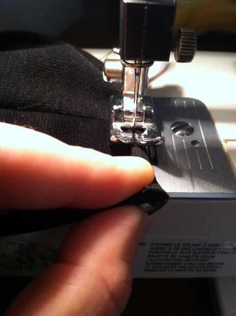 - coser a lo largo de la cinta, asegurándose de mantener su tela atiborrado en la cinta tanto como usted puede