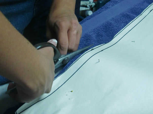 Doblar la toalla para cubrir los bordes de la misma en el medio. Luego sólo tienes que coser un lado.