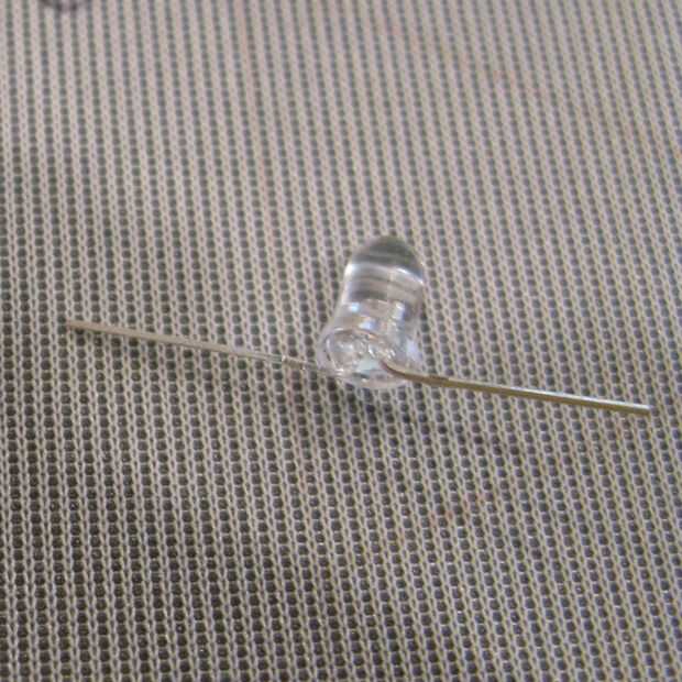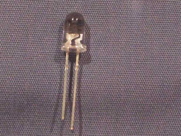 Entonces conecté el otro extremo de la resistencia al positivo de un LED usando el mismo método de torcer la pierna de resistencia alrededor de la pata del LED y viceversa. Generalmente, la pierna más larga de un LED es el positivo. Puede comprobar esto mirando el LED cerca. La placa más pequeña es la placa positiva. Tienes que conseguir este derecho para el circuito a trabajar.