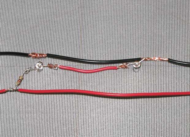 Conecté el resistor de 270 ohm a la parte inferior del cable rojo. No importa qué extremo de la resistencia se conecta. He envuelto el Calvo alambre alrededor de la pata de la resistencia y luego envuelve la porción restante de la pierna de resistencia alrededor del alambre. Esto resulta en una buena conexión mecánica que fácilmente no se desintegraría. Utilice los alicates para envolver los cables y las piernas - lo hace mucho más fácil.
