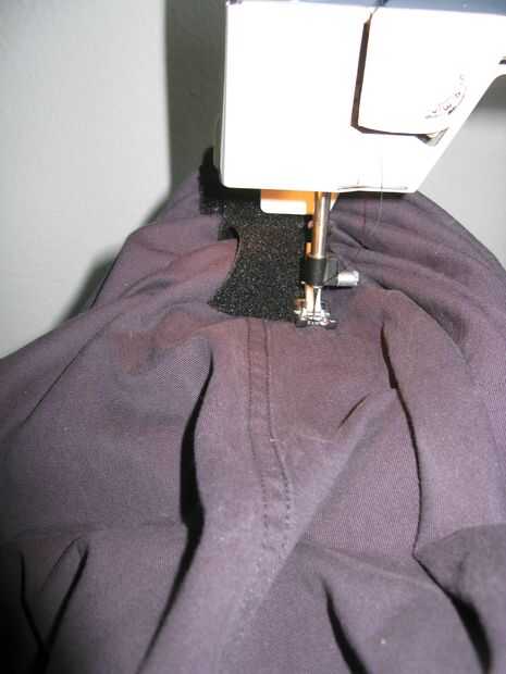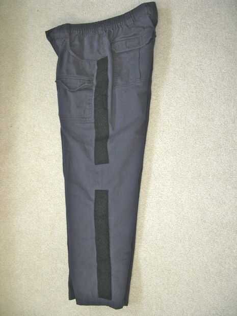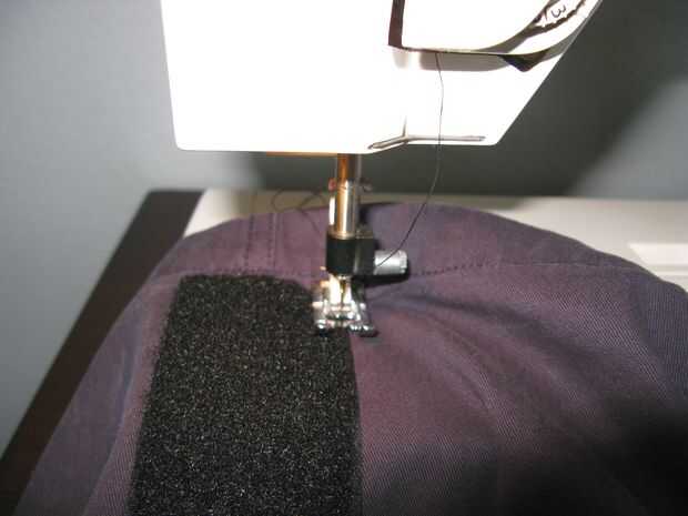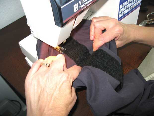 Esto es un poco complicado ya que la pierna del pantalón es estrecha, hay que seguir tirando del otro lado de la pierna hacia fuera debajo del prensatelas de la máquina de coser. Lo hice en dos partes - iniciado en la parte superior del bolsillo y cosido como podía y entonces al revés el pantalón y empezó desde abajo. Fui capaz de coser toda la longitud de la cinta de Velcro, de esta manera.