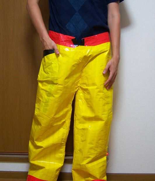 Y qué mejor manera de permanecer seco que con un par de pantalones de cinta del conducto. Y no sólo sus pantalones de lluvia diarios, tesis cachorros son lleno-en tifón-pantalones, con una cintura ceñida, las piernas ceñidas y un bolsillo frontal, todos 100% cinta.