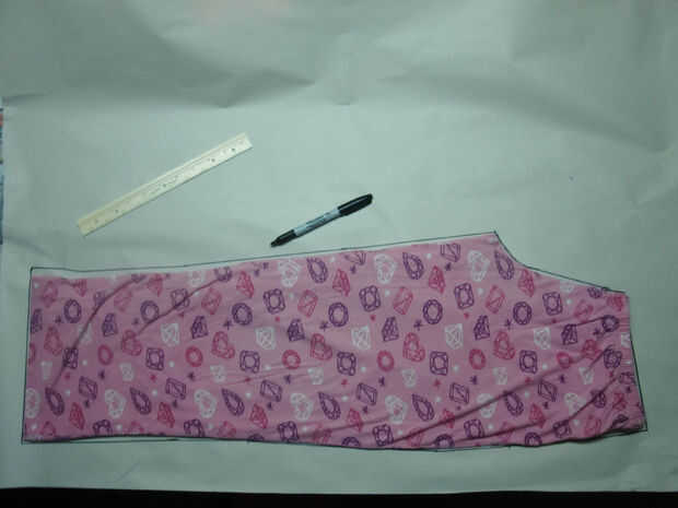 Traza la forma de los pantalones, agregando una media pulgada, y 2 pulgadas para la cintura.