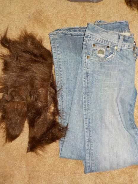 Los materiales son simples para este proyecto. Todo lo que necesitas es un par de jeans viejos (compré este par de una tienda para muy barato) algunos piel sintética, aguja e hilo de rosca y una navaja o tijeras.